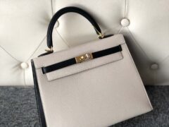 スポットエルメスカラーブロッキングケリーバッグエルメスミルクシェイク白と黒のヤギ革ケリー25cmゴールドバックル