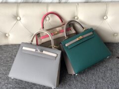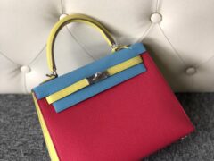 スポットエルメスケリー25CMエルメスさまざまなカラーマッチングエプソムレザーケリーバッグゴールド/シルバーバックル