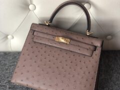 スポットエルメスケリー25cmエルメスムースグレーKKダチョウスキンケリーバッグアウターシームゴールドバックル/シルバーバックル