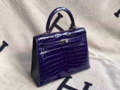 スポットエルメスケリーバッグ価格エルメス光沢のあるクロコダイルスキンKelly28CM7T電気光学ブルーゴールドバックル