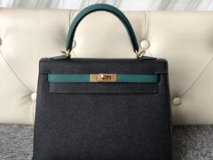エルメスカラーブロックケリーバッグエルメスケリー25cmCK89ブラックZ6マラカイトグリーンエプソムレザーブラッシュドゴールドバックル