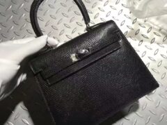 スポットエルメスケリーバッグビッグイヤーエルメスケリー20CMCK89ブラックトカゲスキンシルバーバックル