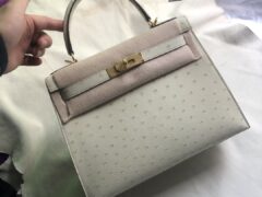 エルメスケリー28cmエルメス3CウールホワイトKKオーストリッチスキンケリーバッグゴールドバックル付き