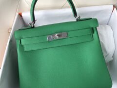 スポットエルメスケリーバッグ価格エルメスオリジナルトーゴレザーKelly28CM1Kバンブーグリーンシルバーバックル