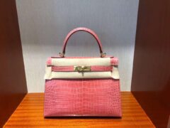 エルメスケリー28cmエルメス5Lロブスターピンクシャイニークロコダイルスキンケリーバッグゴールドバックル