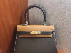エルメスカラーブロックケリーバッグエルメスチョコレートカラーブロックゴールドブラウンエプソムレザーKelly20CMゴールドバックル