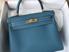 スポットエルメスケリーバッグ価格エルメスケリー28CMCK75デニムブルーカーフスキンゴールドバックル