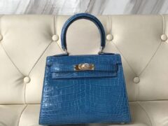 エルメスケリー20CMエルメスシャイニーナイルクロコダイルスキンケリーバッグ7Qギリシャブルーゴールドバックル