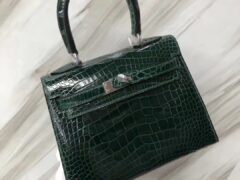 カスタマイズされたエルメスKelly20CMエルメス光沢のあるクロコダイルスキンケリーバッグCK67エメラルドシルバーバックル