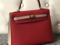 カスタムエルメスカラーブロックケリーバッグエルメスオリジナルエプソムレザーQ5フラッグレッド/S2ウィンドブレーカーグレーケリー25cmゴールドバックル