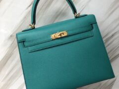 スポットエルメスケリーレディースバッグエルメスパームグレイン牛革アウターシームケリーバッグKelly25CMU1ヴェローナグリーンゴールドバックル