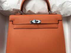 スポットエルメスケリーバッグサイズエルメスオリジナルエプソムレザーKelly25CM93オレンジシルバーバックル