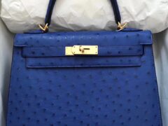 エルメスケリー28CMエルメス7TエレクトリックブルーオリジナルKKオーストリッチレザーケリーバッグゴールドバックル