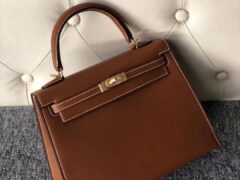 カスタムエルメスケリー25CMエルメスゴールデンブラウンオリジナルサドルレザーアウトスリーブケリーゴールドバックル