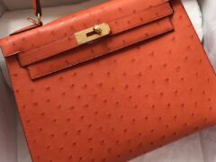 エルメスケリー28CMエルメス93オレンジKKオーストリッチレザーケリーバッグゴールドバックル