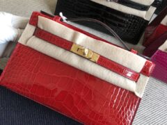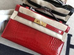 スポットエルメスエルメスCK95フェラーリレッドシャイニークロコダイルレザーミニケリーミニケリーバッグゴールドバックル