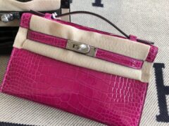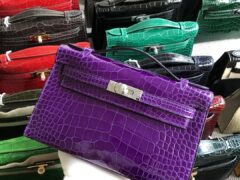 スポットエルメスミニケリーバッグエルメスミニケリーポシェット5Lエクストリームパープル光沢クロコダイルレザーシルバーバックル