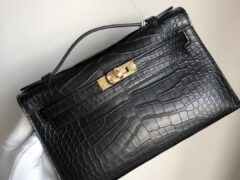 スポットエルメスハンドバッグエルメスMinikelly22CMCK89ブラックマットクロコダイルレザーミニケリーバッグゴールドバックル