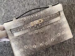 カスタムエルメスミニケリークラッチ22cmエルメススモールヒマラヤリザードレザーミニケリーバッグシルバーバックル