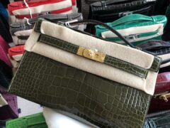 スポットエルメスミニケリーバッグエルメスシャイニークロコダイルレザー6Hオリーブグリーンミニケリー22cmゴールドバックル/シルバーバックル