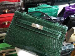 スポットエルメスエルメス6QエメラルドグリーンブライトクロコダイルレザーミニケリーバッグMinikelly22CMシルバーバックル