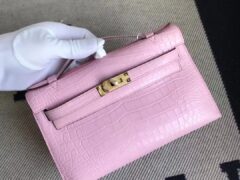 スポットエルメスミニケリーハンドバッグエルメスマットクロコダイルレザーミニケリーバッグ5P桜ピンクゴールドバックル
