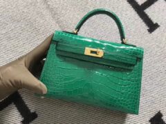 エルメスミニケリーバッグ2世代エルメスミニケリー-2エメラルドグリーンシャイニークロコダイルレザーゴールドバックル