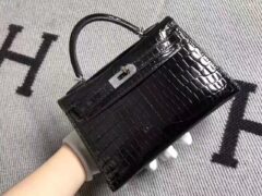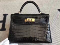 ファクトリーアウトレットエルメスミニケリー22cmCK89ブラックシャイニークロコダイルレザークラッチ