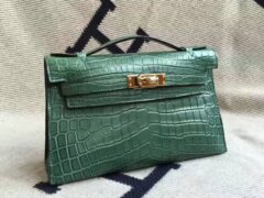 エルメスミニケリーエルメスZ6マラカイトグリーンマットスクエアクロコダイルレザーミニケリーバッグ22cm