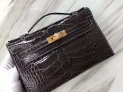 スポットエルメスミニケリーバッグエルメスMinikelly22CMCK88グラファイトグレー光沢のあるクロコダイルレザーゴールドバックル