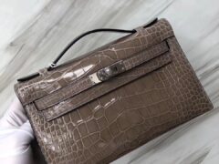 スポットエルメスミニケリーバッグハンドバッグエルメスMinikelly22CMCK19ムースグレーフォグクロコダイルレザーゴールドバックル