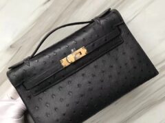 スポットエルメスミニケリーバッグエルメスMinikelly22CMオーストリッチレザー2Zミッドナイトブルーゴールドバックル