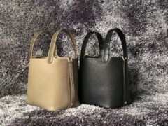 エルメスベジタブルバスケットバッグエルメスピコチン18/22cm8Cエレファントグレークレマンスレザーバケットバッグシルバーバックル