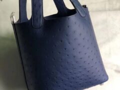 カスタムエルメスベジタブルバスケットバッグエルメスピコチン18CMサファイアブルーKKオーストリッチレザーバケットバッグシルバーバックル