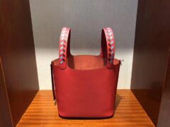 スポットエルメスピコチン22CMエルメスS3ハートレッドパームグレインクラフト野菜バスケットバッグバケットバッグ織り手首