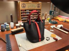 エルメスピコチン18/22cmエルメス89ブラックと54ビッグレッドベジタブルバスケットバッグクレマンスレザーシルバーバックル