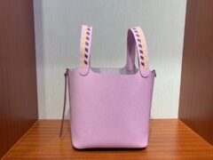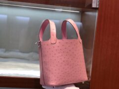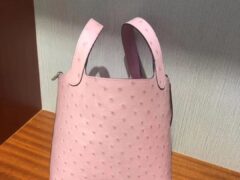スポットエルメスバケットバッグエルメスピコチン18CMCK94セラミックパウダーKKオーストリッチスキンベジタブルバスケットバッグシルバーバックル