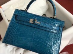 エルメスミニケリーエルメス7Wイズミールブルーシャイニークロコダイルレザーミニケリーバッグ2世代シルバーバックル