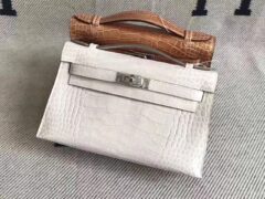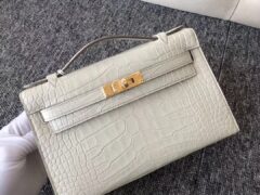 エルメス ナタ ポシェットケリー ミニ ホワイト系 HERMES Mini Kelly Nata Alligator handbag (Ⅰ) クレケリークロコハンドバッグ ゴールド金具