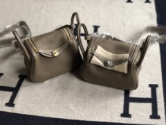 スポットエルメスミニリンディ19cmエルメスCK18エレファントグレーTCレザーミニリンディバッグゴールド/シルバーバックル
