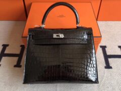 エルメスケリーバッグ価格エルメスCK89ブラックシャイニークロコダイルレザーケリーバッグ25cmシルバー