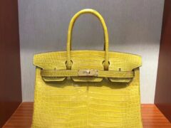 スポットエルメスBirkin30CMエルメス9D琥珀色黄色明るいクロコダイルレザープラチナバッグゴールドバックル