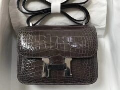 エルメスコンスタンスバッグエルメスコンスタンス18CM8Pペンシルグレーシャイニークロコダイルレザーシルバーバックル