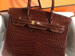 スポットエルメスバーキンレディースバッグエルメスシャイニークロコダイルレザーCK31ハニーブラウンプラチナバッグBirkin30CMゴールドバックル
