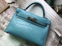 エルメスクロコダイルレザーミニケリーバッグエルメスギリシャブルーシャイニークロコダイルレザーミニケリークラッチシルバーバックル