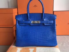 エルメスバーキン30CMエルメスマットクロコダイルレザープラチナバッグ7Tエレクトロオプティックブルーシルバーバックル