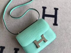 カスタムエルメスコンスタンスバッグエルメスコンスタンス19CM6Uミントグリーンマットクロコダイルレザーシルバーバックル