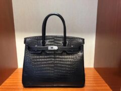 スポットエルメスバーキンバッグエルメスマットクロコダイルレザープラチナバッグBirkin30CMck89ブラックシルバーバックル