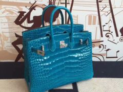 バーキン25CMアリゲーターシャイニーシャイニースクエアクロコダイル7Wイズミルブルーブルーイズミルシルバーバックル