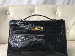 エルメスミニケリークラッチエルメスシャイニークロコダイルレザーミニケリーバッグCK89ブラックゴールドバックル
